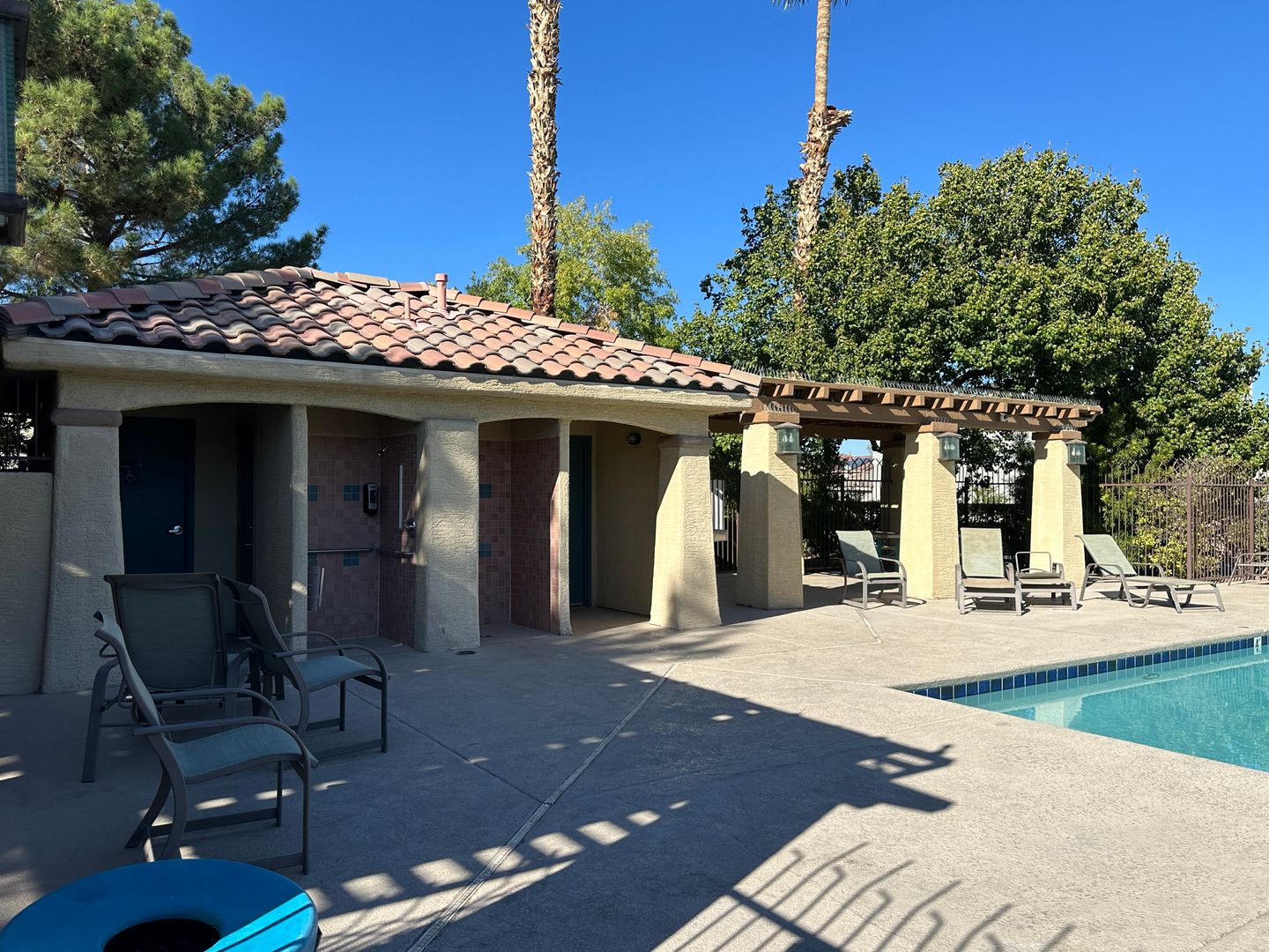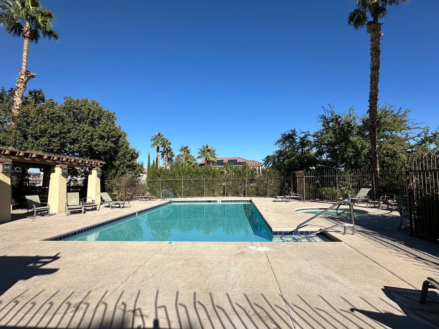 This beautiful 3 bed/2.5 bath two story home 1461 square feet is located in a Gated Community in Peccole Ranch! Two car attached garage. Formal living room. Dining area. Kitchen has tile counter tops and tile floors! All bedrooms are upstairs. Master bedroom has a walk-in closet. Master bathroom has double sinks. Has a backyard with a patio! Has a Community Pool!