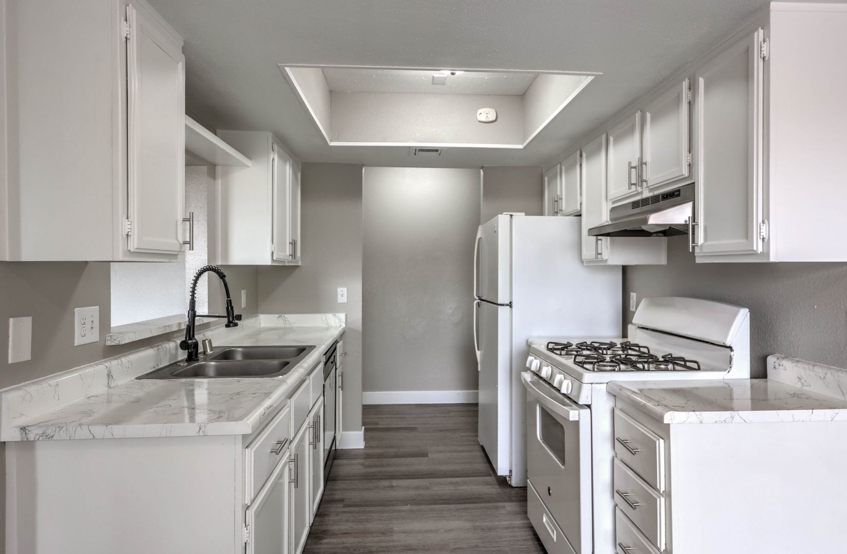 The kitchen is well-appointed and features modern appliances, including a stove, refrigerator, and dishwasher. This setup ensures that you have all the necessary tools to prepare meals and make your everyday life more convenient. The breakfast bar offers additional seating and serves as a versatile space for quick meals or casual conversations.