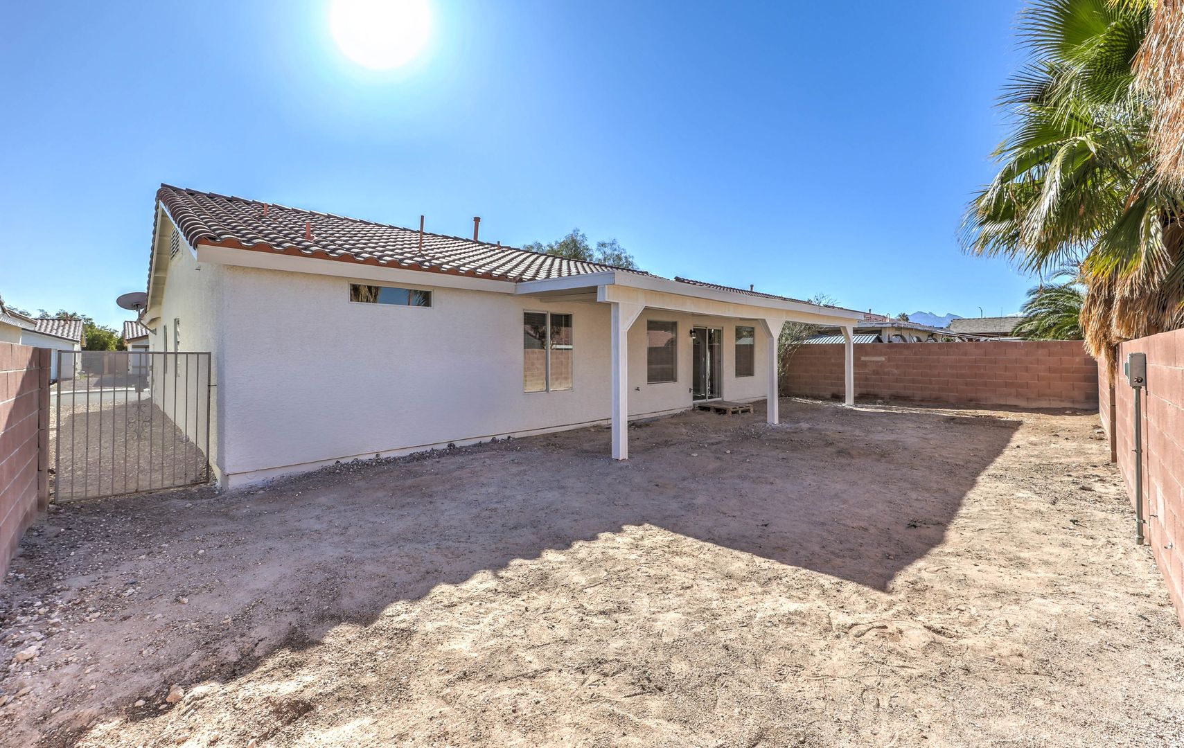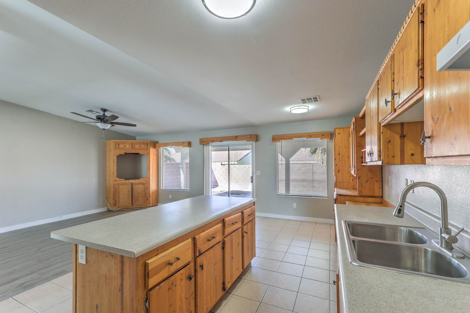 bed! The kitchen features an island and tile flooring! Primary bedroom with Walk-In closet! Backyard with
