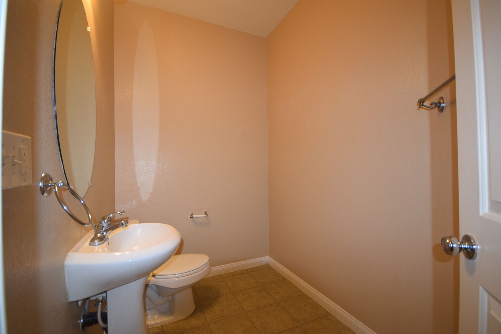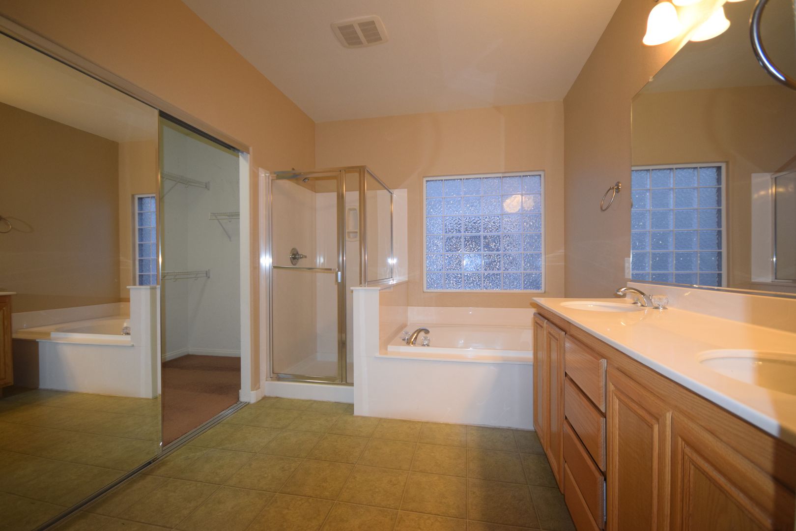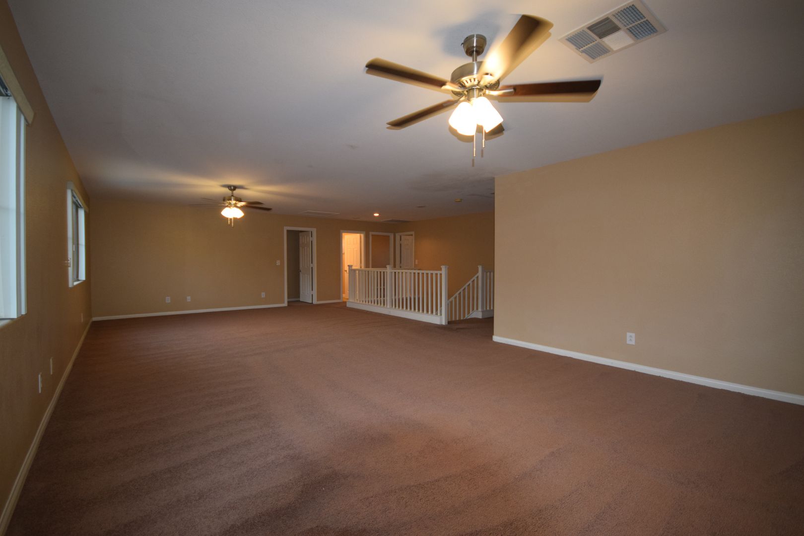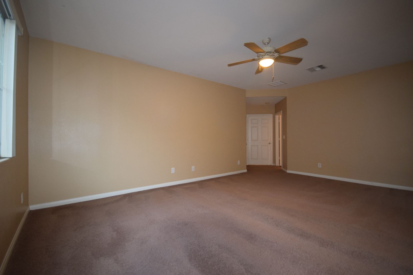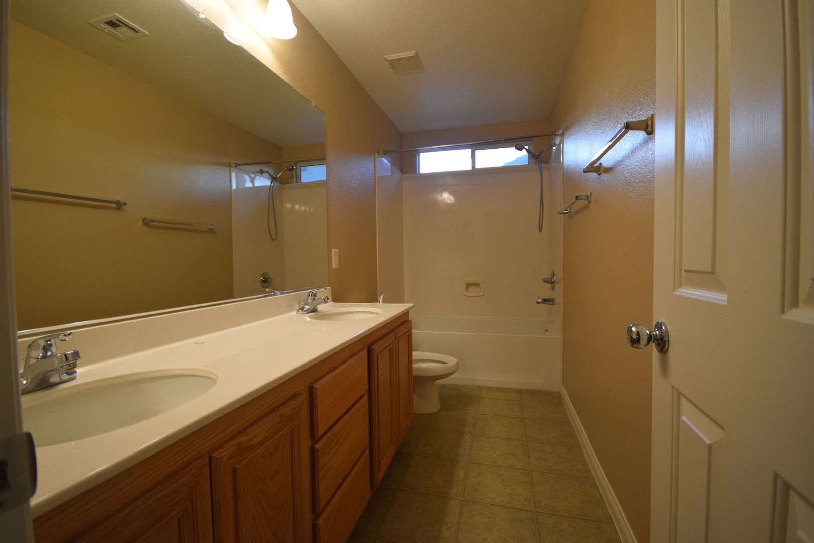 Attached 3 car garage; tiled entry/foyer; carpet flooring throughout except for the wet areas; eat in kitchen with tile flooring, pantry, island, solid surface counter-tops, breakfast bar; formal dining area; formal living room; separate family room with fireplace and media niche; spacious upstairs loft; master bedroom on the first floor with walk in closet; master bath with double sinks, large shower, garden tub; secondary bedrooms on the second floor (one with walk in closet); laundry room on the first floor; private backyard with covered patio and desert landscaping. TENANT PAYS $22 PER MONTH FOR TRASH.