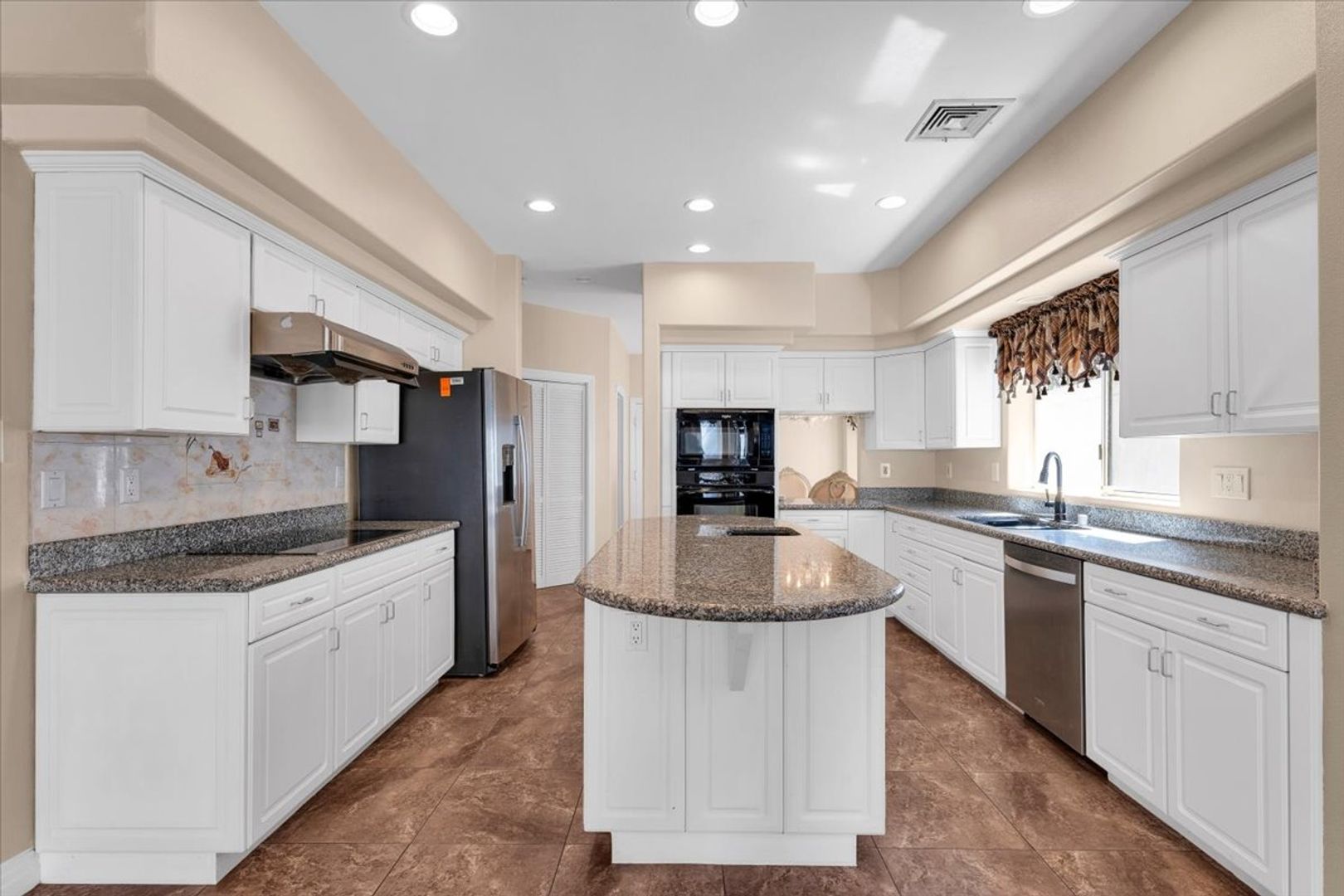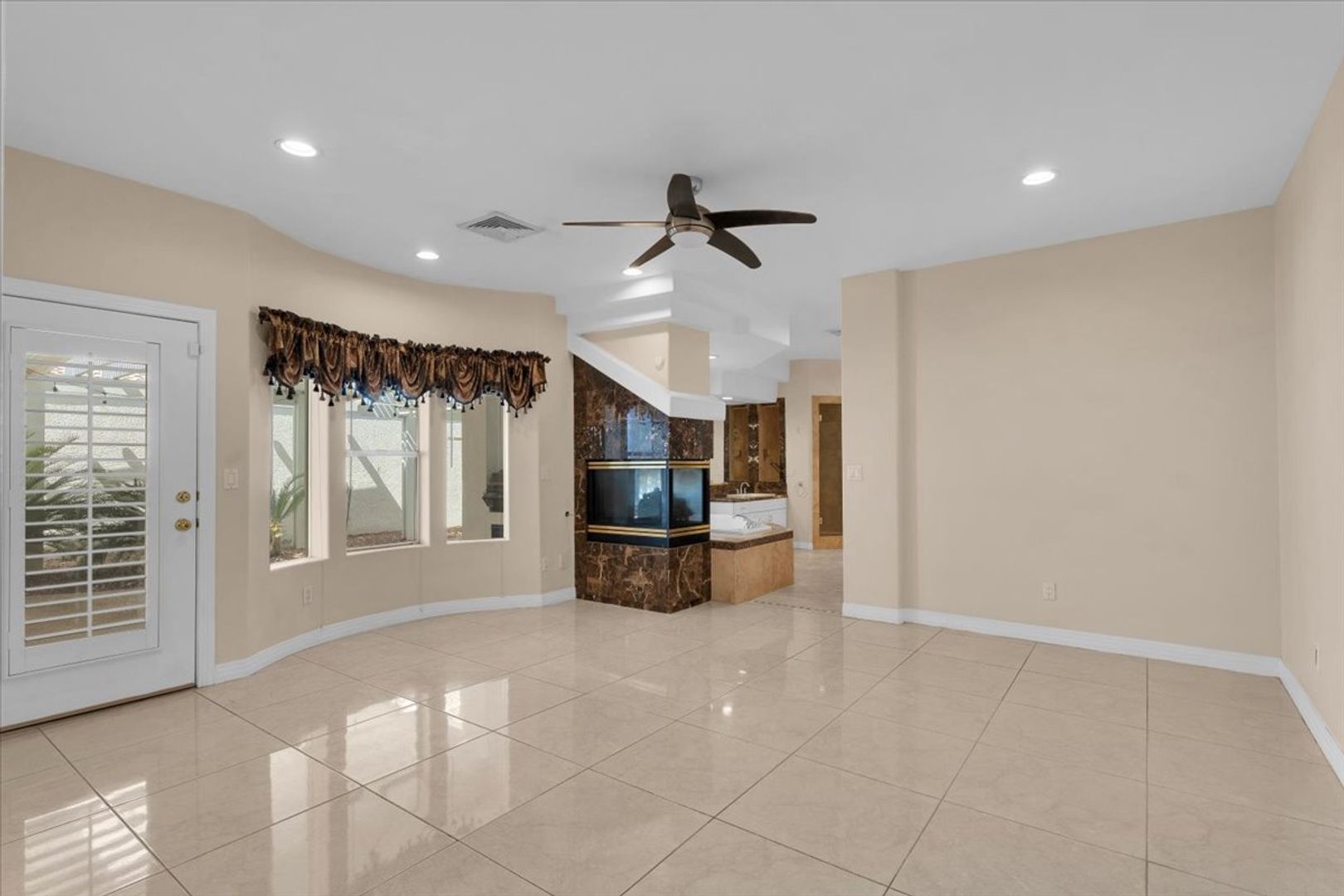 Welcome to this luxurious Desert Shores Estate! This custom-built home has all the necessary upgrades one could desire. Furnished or Unfurnished option available. This estate sits on a matured, upscale, custom gated community, known as Pelican Point. Included services and utilities are trash collection, and sewage. Utilities not included are water, gas, electric, landscape and cable, and home has solar to help with electric costs. This home includes a three car garage, water softening system, central vacuum system, multiple fireplaces throughout, hard-surface flooring throughout, granite counters, kitchen backsplash and stainless steel appliances, ceiling fans throughout, and fully fenced-in yard. Desert Shores features lushly landscaped lakes, parks and walking trails.