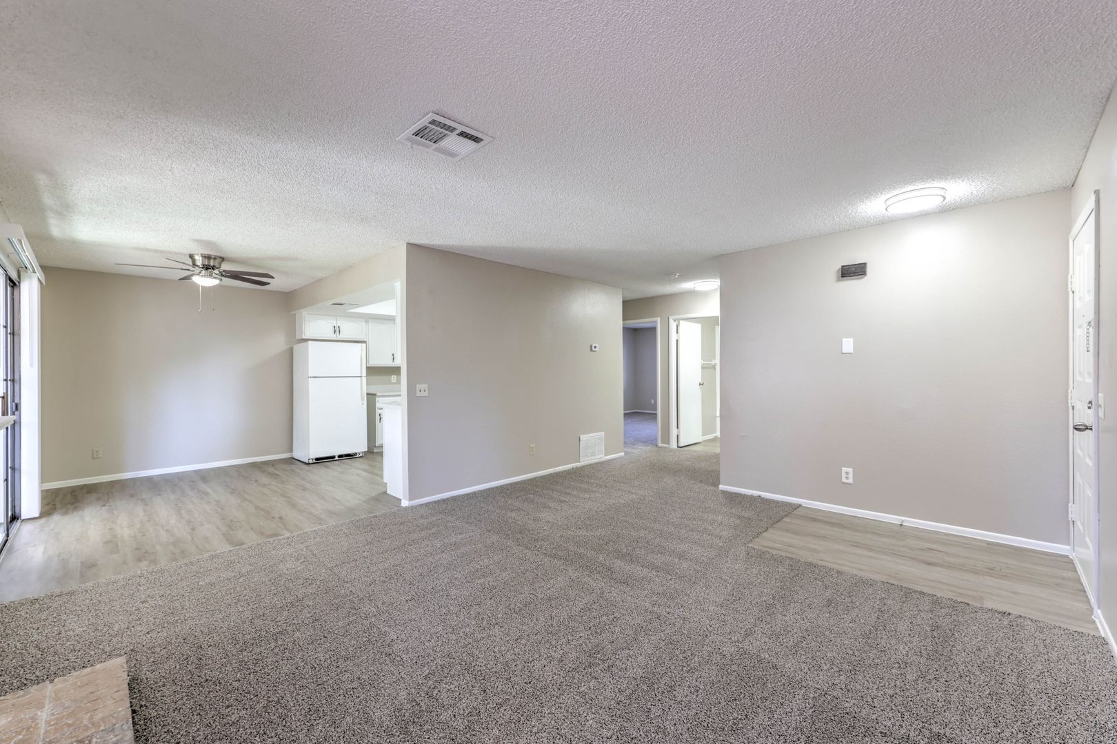 This condo features a covered patio facing a community coutyard. In the condo you will find a brick fireplace. The renovated kitchen features resufaced cabinets, and brand new quartz countertops.